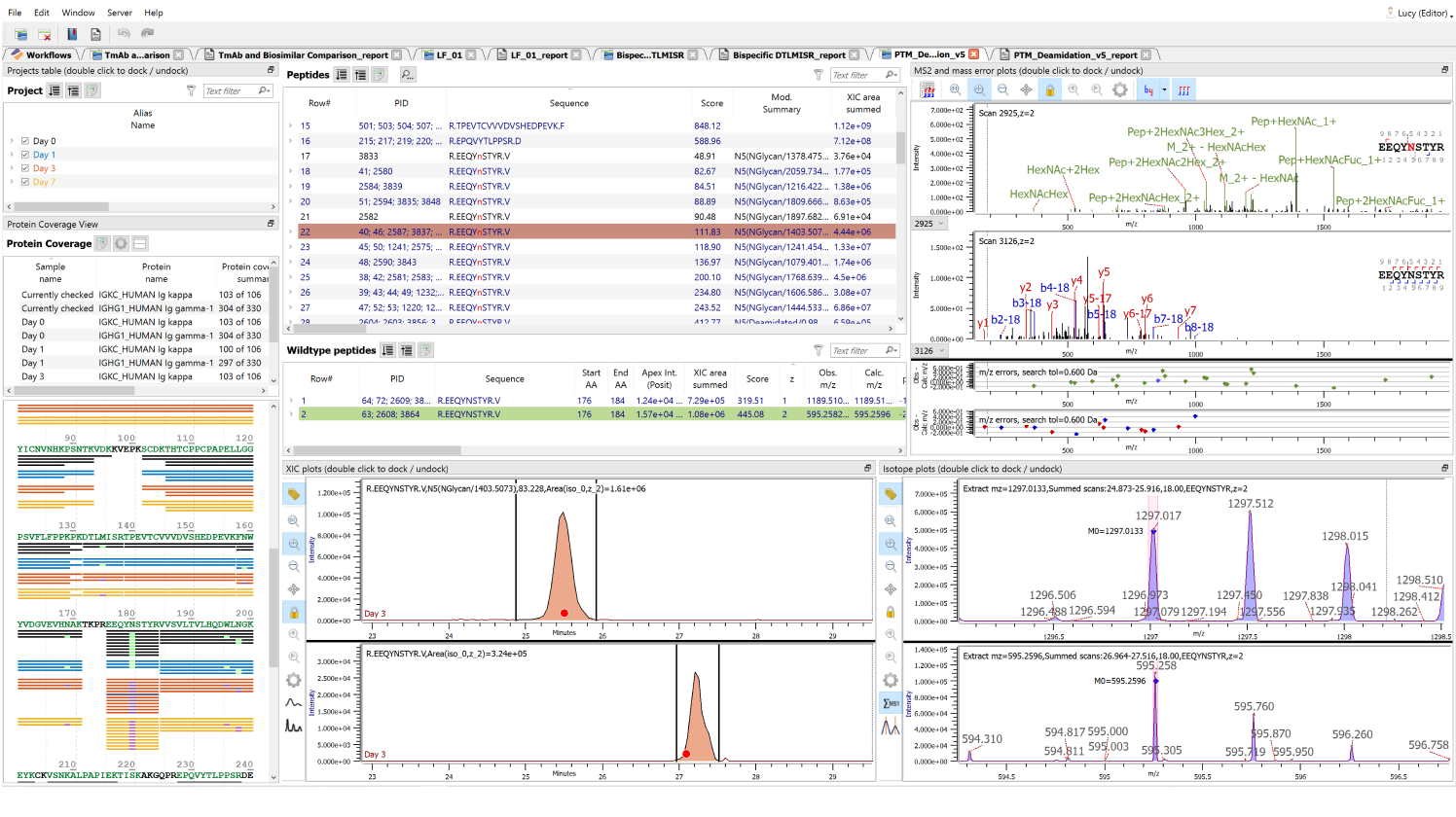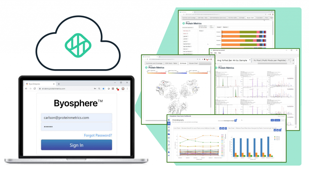 Byos 蛋白表征软件 Byos桌面软件提供全面的质谱分析解决方案,支持稳健的生物治疗蛋白表征与精准报告生成。 表征复杂生物制药候选物 作为一款供应商中立的应用程序,Byos擅长处理原始质谱数据,并可在几分钟内提供分析、检查和报告。 专为科研人员打造的供应商中立软件 Byos兼容各主流品牌质谱仪器数据,有助于快速识别和表征蛋白质。 简洁清晰的用户界面方便您直观地访问蛋白质分析所需的所有工具和数据,提供极致精准的分析,可量化至痕量水平的物质。 全面分析与智能报告 快速、高效的分析工作流程全面自动化了质谱分析流程,让任何用户都能轻松驾驭,快速分析和表征最复杂的生物制品。模板化报告和独特的算法有助于最大限度减少不确定性,确保结果一致,实现分析的可重复性,并消除实验室间的差异。 为您的蛋白分析布局未来 Protein Metrics在产品开发全周期中为蛋白表征提供坚实支持。根据您的研究重点灵活添加Byos功能,或升级至Byosphere以实现企业级分析、报告与协作。 点击了解Byosphere平台 一键启动蛋白表征全流程 每个工作流程均经过精心设计,大幅缩短质谱分析与报告时间,并自动从模板填充报告和分析摘要,确保团队报告的一致性。 完整分子、亚基及Native的精准分析 完整分子工作流程集成自动MS/MS光谱注释、MS级去卷积与鉴定功能,相比传统自下而上的方法,显著缩短数据分析时间。 点击了解Intact工作流程 肽图分析 在复杂样品中鉴定蛋白质和修饰肽段,显著缩短以肽段为中心的工作流程的分析时间 点击了解Peptide工作流程 色谱分析 利用峰注释、色谱图对齐、峰与迹线比对、释放糖链分析以及自动报告生成等工具,简化色谱分析流程。 点击了解Chromatogram工作流程 多蛋白定量分析 实现分析自动化,加速细胞系筛选、精准HCP定量与即时蛋白混合物分析。模板化Dashboard简化复杂LC-MS/MS数据,为非专业人员提供实时、清晰的见解。 点击了解Multi-Protein Quantitation工作流程 Byos工作流程 分子量分析 配体结合分析蛋白-蛋白相互作用研究蛋白与亚基精准鉴定糖基化谱深度剖析ADC与DAR精确分析基于iCIEF-MS与CE-MS的电荷变体全面解析 了解更多 肽图分析 热点区域深度探索 肽段图谱精准绘制 PTM全面解析 HCP深度检测 序列变体精准识别 表位图谱精细绘制 了解更多 多蛋白定量分析 复杂蛋白无标记相对定量蛋白质组谱深度分析与完整蛋白表征快速样品制备与质谱质量严控 了解更多 核苷酸序列分析 寡核苷酸工作流程优化杂质与截短片段精准检测已知寡核苷酸序列确认 了解更多 从头测序 纯化单克隆抗体全自动测序 了解更多 色谱分析 MAM工作流程全面优化CE-UV、SEC-UV、LC-UV及其他色谱工作流程集成二维迹线数据高效导入 了解更多 高级结构研究 HDX与FPOP工作流程创新表位、抗原结合位点图谱绘制及高级结构研究结果以.pdb格式清晰呈现 了解更多 蛋白重构 解卷积完整分子数据与肽段图谱数据精准关联PTM定量、降解或偶联分析深入进行采集参数优化建议精准提供 了解更多 MOBILion HRIM Mobie工作流程优化释放糖链、完整分子与肽段图谱绘制工作流程集成 了解更多 icIEF MS Intabio iCIEF工作流程创新等电点(pI)轴上解卷积结果清晰呈现 了解更多 联系我们