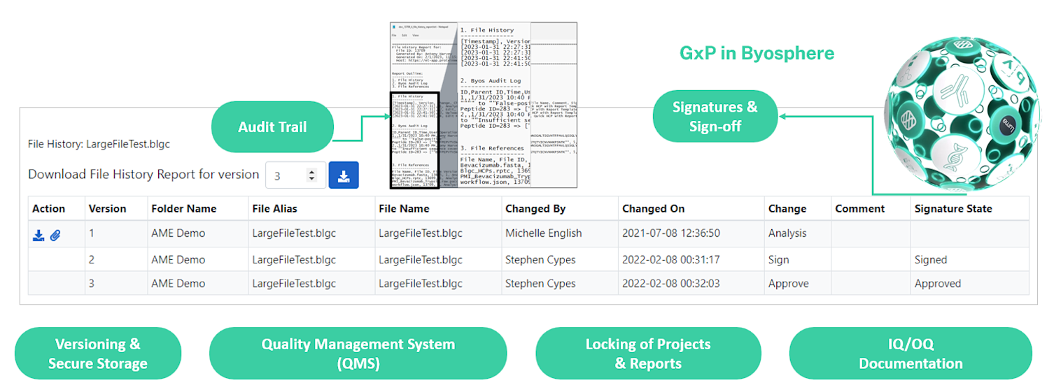 项目团队可以围绕治疗性蛋白质、项目或实验室在全球范围内灵活组织,并设有明确的用户权限控制,可访问历史版本和文件记录。Byos 生成的动态报告为接收者提供了一种高效的可视化结果方式。