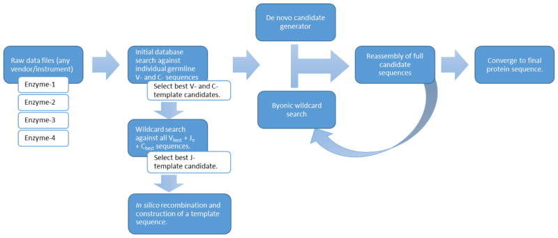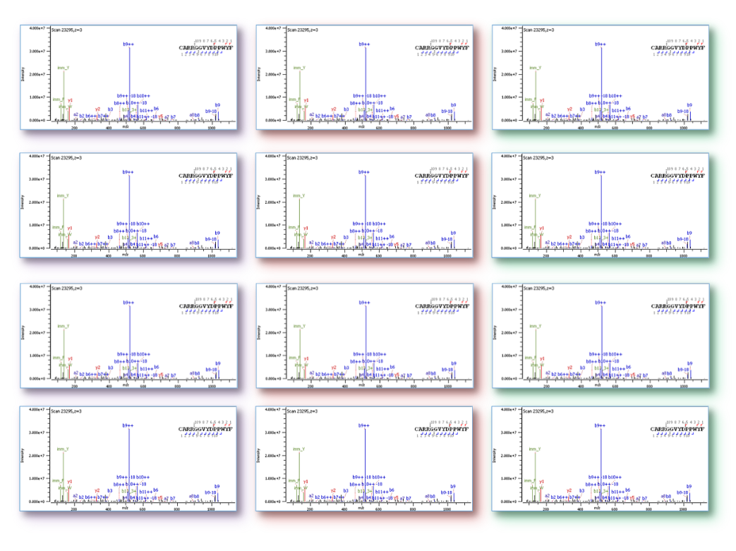 单克隆抗体从头测序 借助质谱技术快速对数百或数千种单克隆抗体(mAbs)进行测序,并自动将各个肽段序列组装成完整的蛋白质序列 基于质谱技术的抗体从头测序 从头测序工作流程允许您仅利用LC-MS/MS数据来确定未知抗体的序列。用多种酶对抗体进行酶解,然后将复杂精细的“拼图”按正确顺序组装起来,从而生成完整的抗体序列。 独特算法 该工作流程在确定抗体序列的方式上独具特色,它模拟了抗体产生的实际生物过程。该算法在计算机中通过迭代且完全自动化的过程收敛得到最终序列。输入的是原始质谱文件,输出的是确定好的序列以及置信度指标。 无与伦比的准确性与可靠性 即使对于亮氨酸和异亮氨酸等具有挑战性的残基,也能提供高置信度的氨基酸分配。可视化检查工具和完整质量分析为您的从头测序结果增添了额外的可靠性保障。 高通量自动化分析 从头测序工作流程可“免人工干预”运行,自动将各个肽段序列组装成完整的蛋白质序列。结果以独特的检查框架展示,以便科学家在报告验证过的序列之前能够高效地对其进行审查。这种自动化工作流程可实现高通量数据处理以及对大型数据集的高效分析。 联系我们