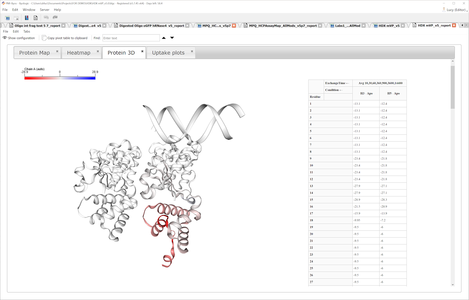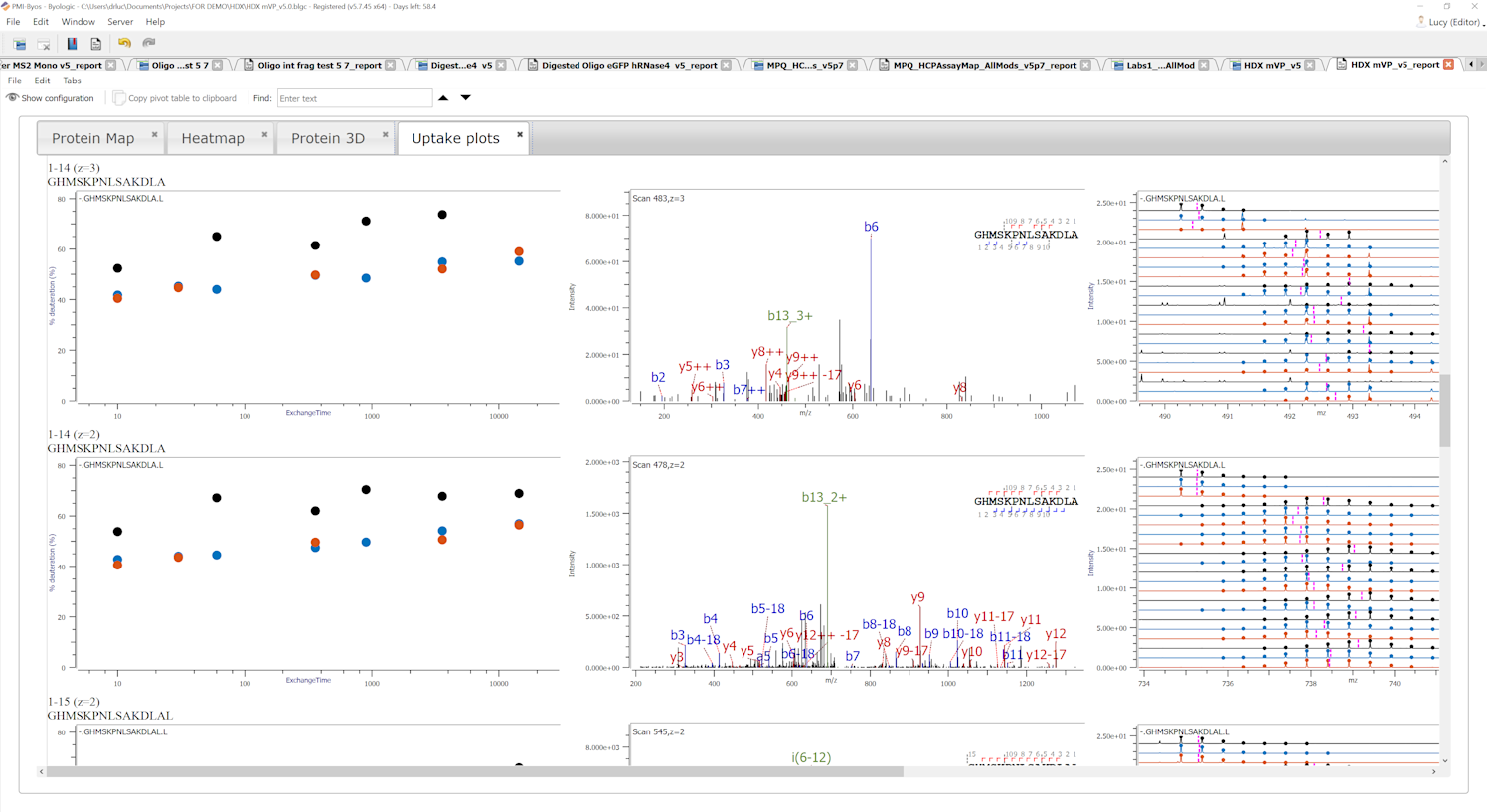氢氘交换质谱分析 一款中立的供应商解决方案,用于处理从氢氘交换实验中获取的LC-MS数据 轻松实现氢氘交换分析 借助氢氘交换质谱技术(HDX-MS),可快速、简便地表征蛋白质的动力学特性和相互作用。现成的氢氘交换工作流程简化了蛋白质动力学与相互作用这一复杂研究,并为氧化标记提供了自动化解决方案。 简化氘摄取量计算 采用单一、简化的方法,即可识别并量化氘的掺入情况。借助直观且易于使用的可视化界面简化氘摄取量计算,从而全面了解蛋白质的动力学特性。 优化工作流程与提升可视化效果 脚本可自动化处理数据,将氢氘交换质谱分析时间从数天缩短至数小时。最大限度地减少人工干预,提高分析效率。预加载的可定制报告模板包含丰富的计算、图表和可视化元素(包括火山图)。可同时以表格形式和三维蛋白质结构形式查看数据。 联系我们